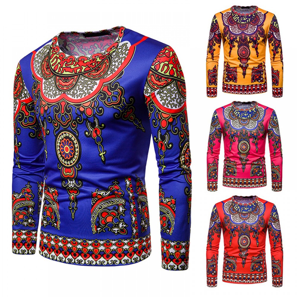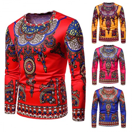Men's Personality Ethnic 3D Printing Round Neck Long Sleeve T-Shirt