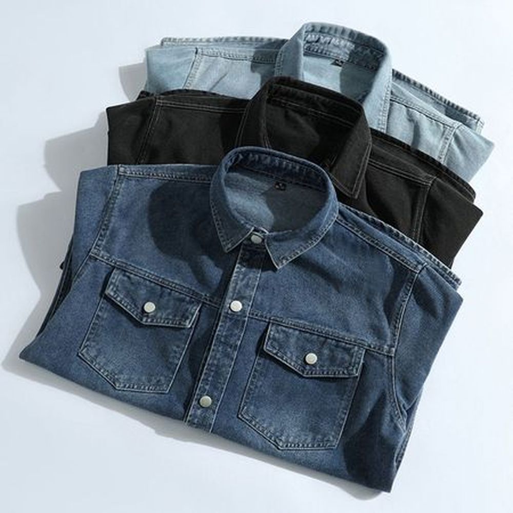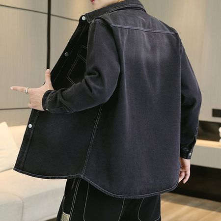 Men's Loose Casual Jacket With Long Sleeve Denim Shirt
