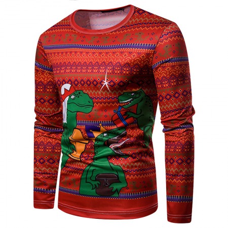 New 3D Personality Printing Fashion Men's Christmas Dinosaur Pattern Long-Sleeved T-Shirt