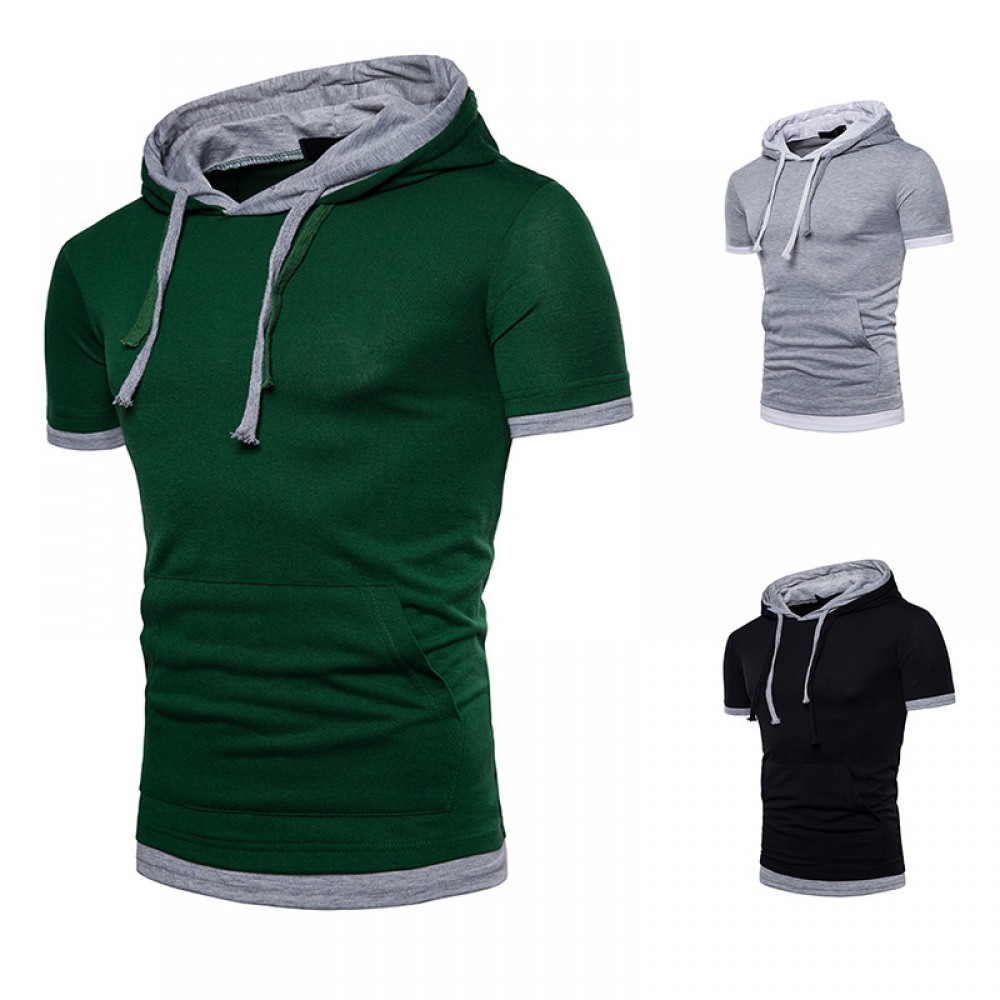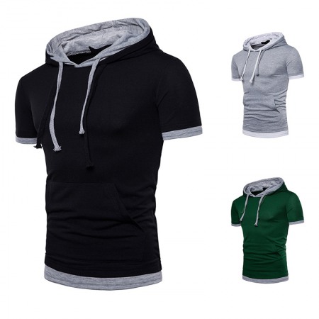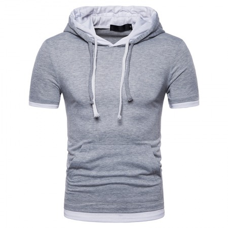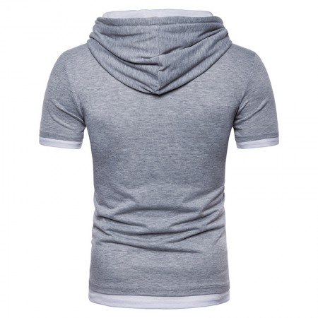 New Fake Two-Piece Fashion Big Size Short-sleeved Hooded T-Shirt