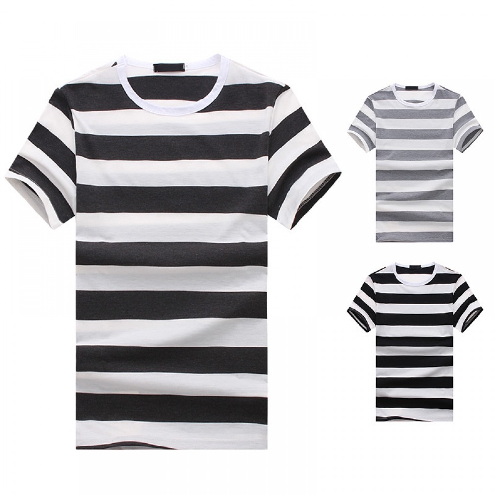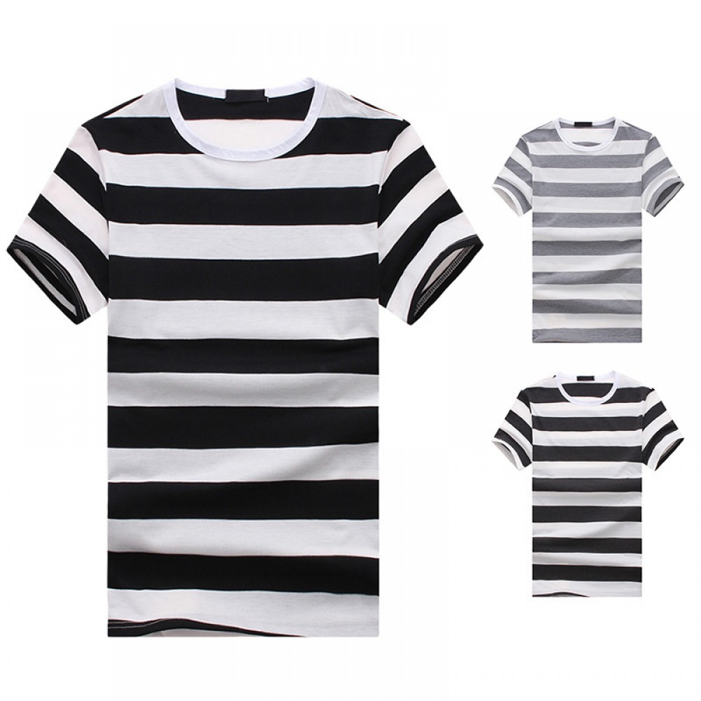 New Summer Men's Short-Sleeved T-Shirt Mens Contrast Striped Slim Casual T-Shirt