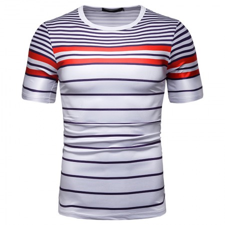 New Summer Men's Short-Sleeved T-Shirt Mens Contrast Striped Slim Casual T-Shirt