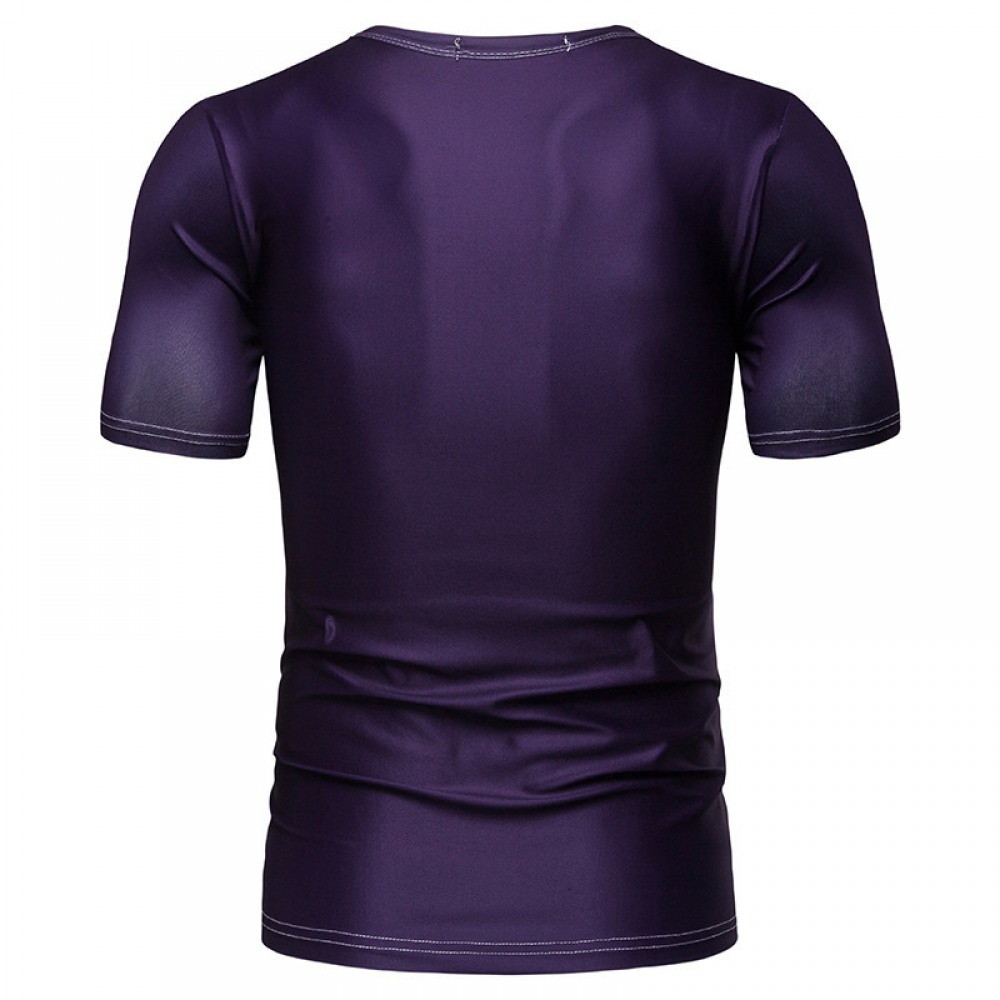 Fall and Winter New Men's Personality Big Press Button Hit Color Short-Sleeved Bottoming T-Shirt Casual Bottoming Shirt Hot Sale