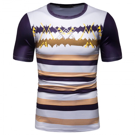 New Summer Men's Short-Sleeved T-Shirt Men's Contrast Striped Slim Casual T-Shirt
