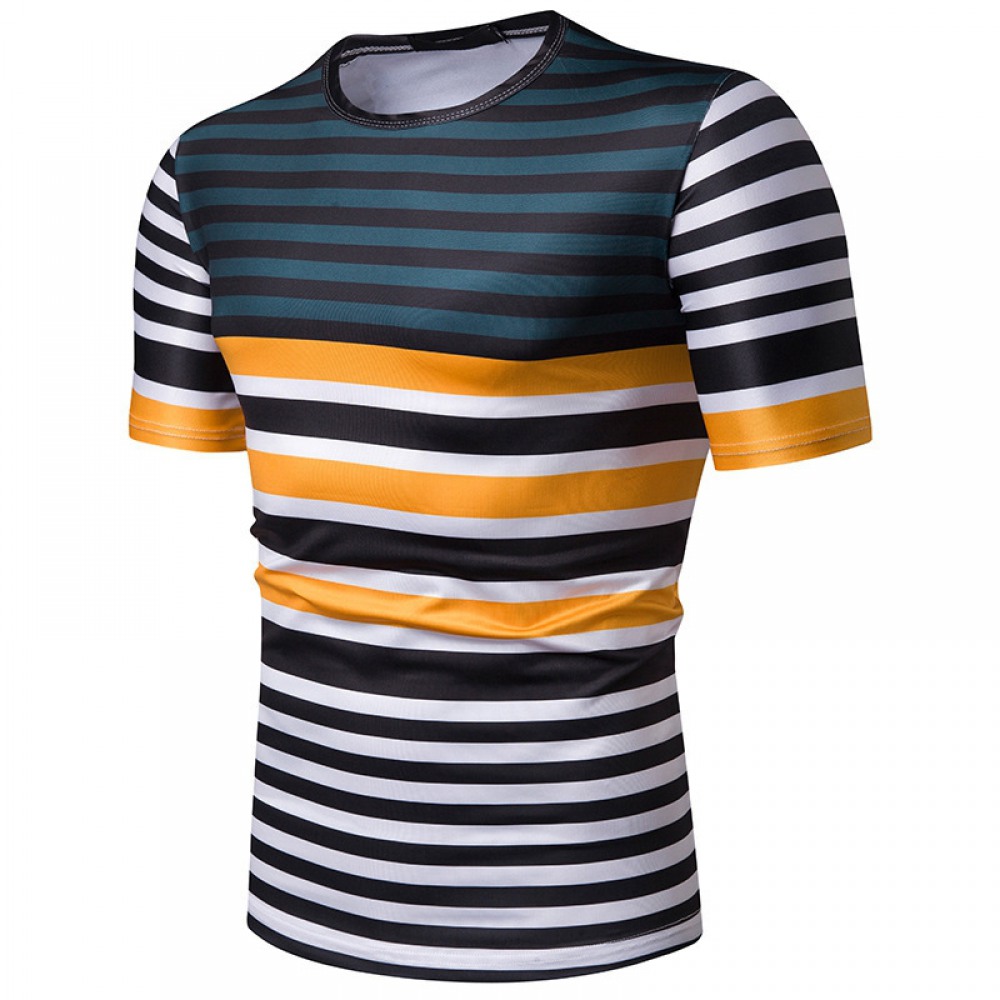 New Summer Men's Short-Sleeved T-Shirt Mens Contrast Striped Slim Casual T-Shirt