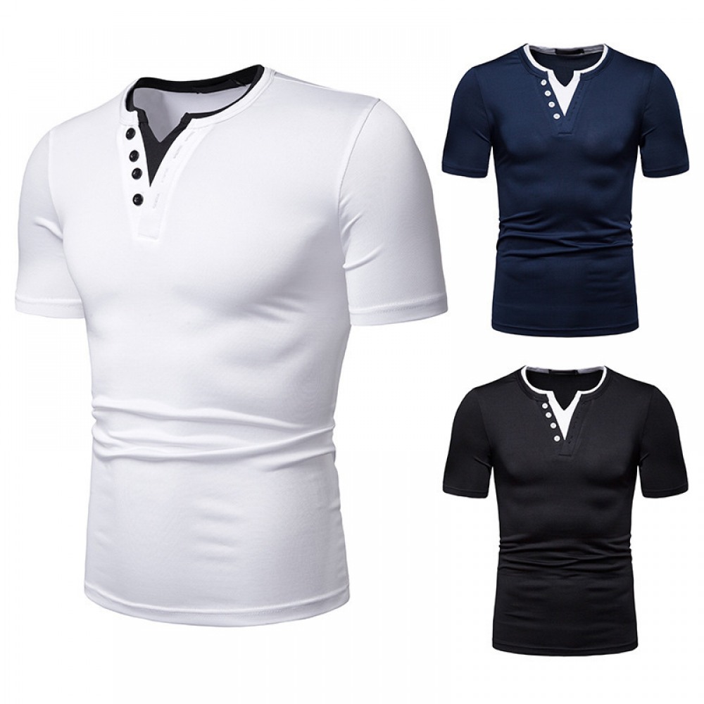 New Summer Men's Placket Knock Button Hit Color Short-Sleeved Bottoming T-Shirt Casual Lapel Bottoming Shirt